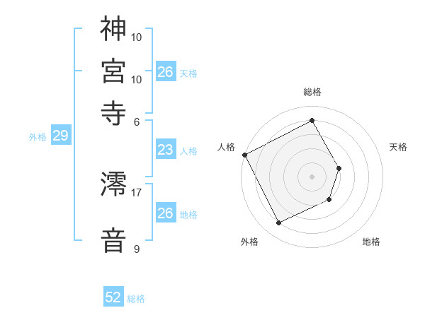 神宮寺 澪音さんの総格は52画の4点!