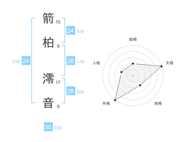 箭柏 澪音さんの天格は24画の5点!