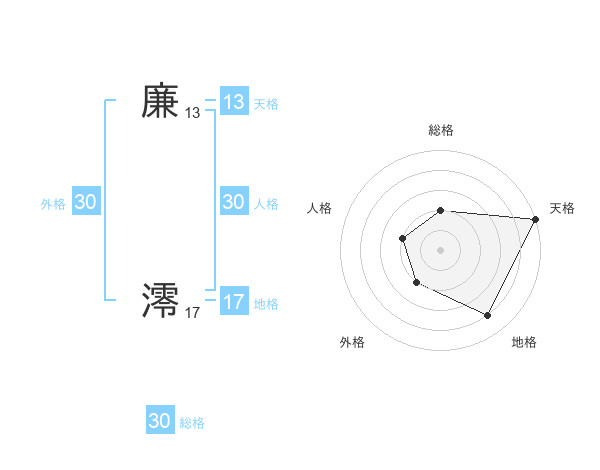 廉 澪さんの天格は13画の5点!