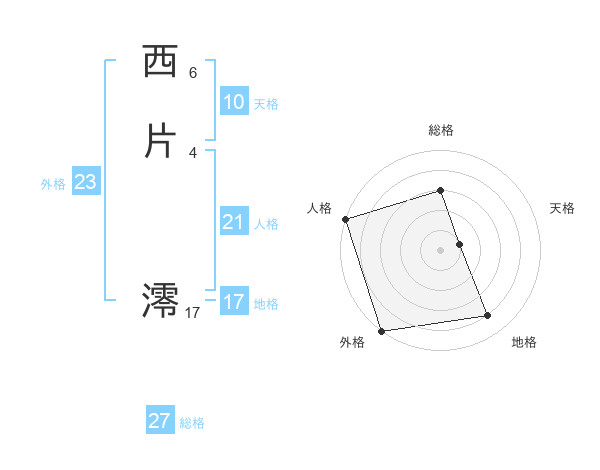 西片 澪さんの外格は23画の5点!
