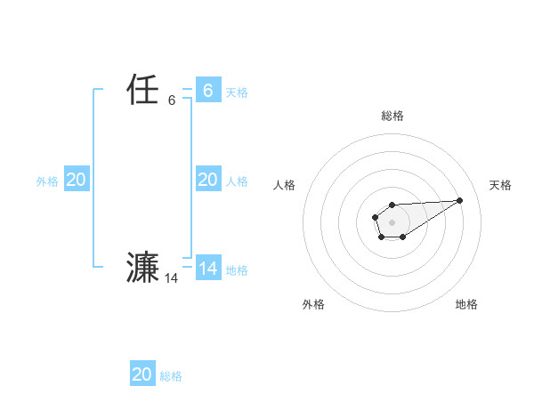 任 濂さんの総格は20画の1点!