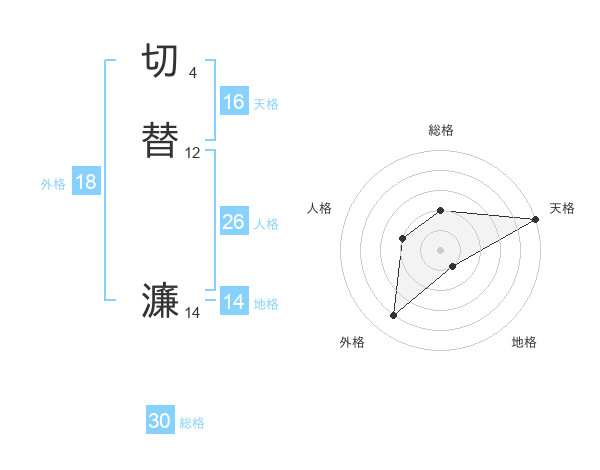 切替 濂さんの天格は16画の5点!
