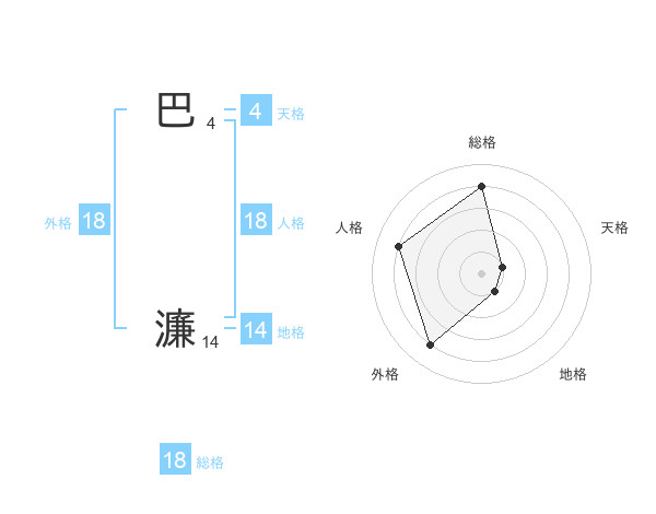 巴 濂さんの総格は18画の4点!