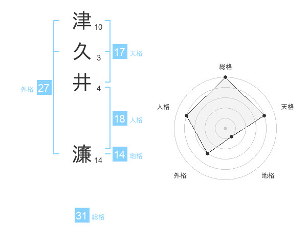津久井 濂さんの総格は31画の5点!