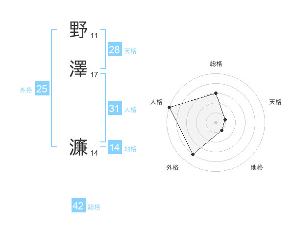 野澤 濂さんの人格は31画の5点!