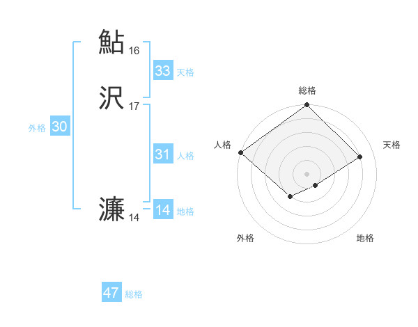 鮎沢 濂さんの総格は47画の5点!
