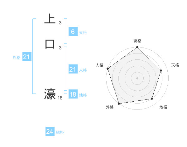 上口 濠さんの外格は21画の5点!