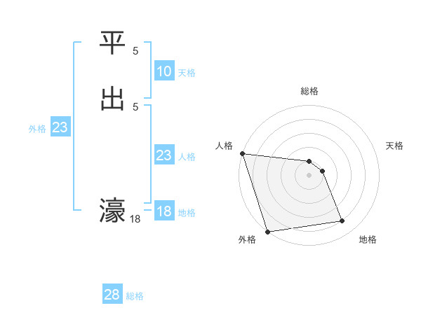 平出 濠さんの外格は23画の5点!