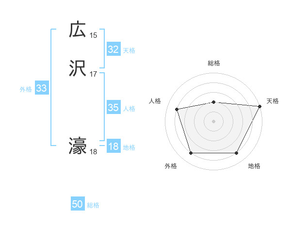 広沢 濠さんの総格は50画の2点!