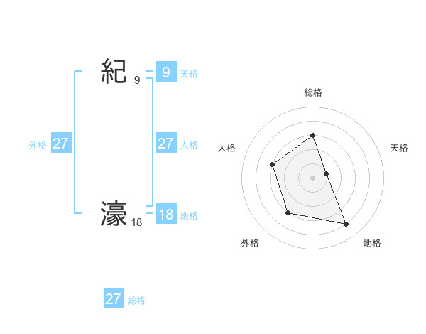 紀 濠さんの総格は27画の3点!