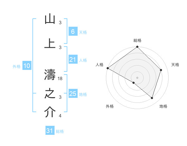 山上 濤之介さんを姓名の画数から五運を鑑定