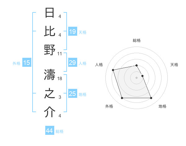日比野 濤之介さんを姓名の画数から五運を鑑定