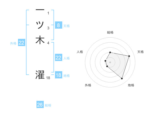 一ツ木 濯さんの外格は22画の1点!