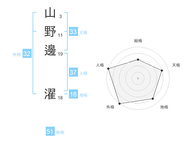 山野邊 濯さんの総格は51画の3点!