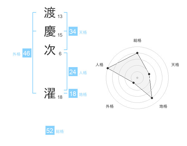 渡慶次 濯さんの総格は52画の4点!