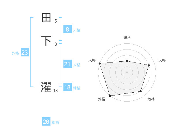 田下 濯さんの総格は26画の2点!