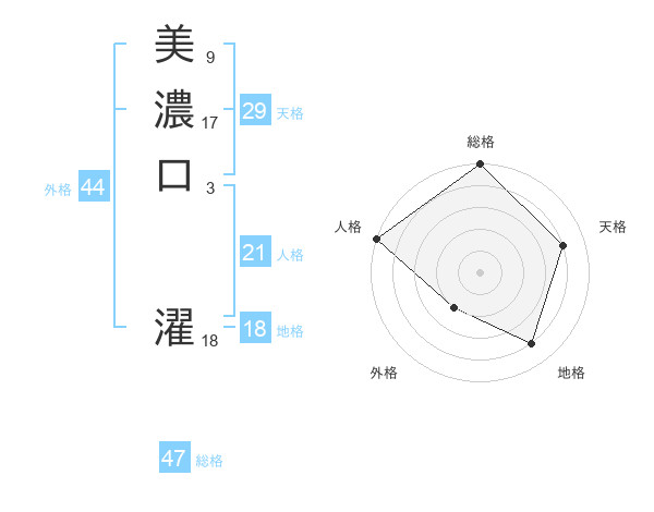 美濃口 濯さんの総格は47画の5点!