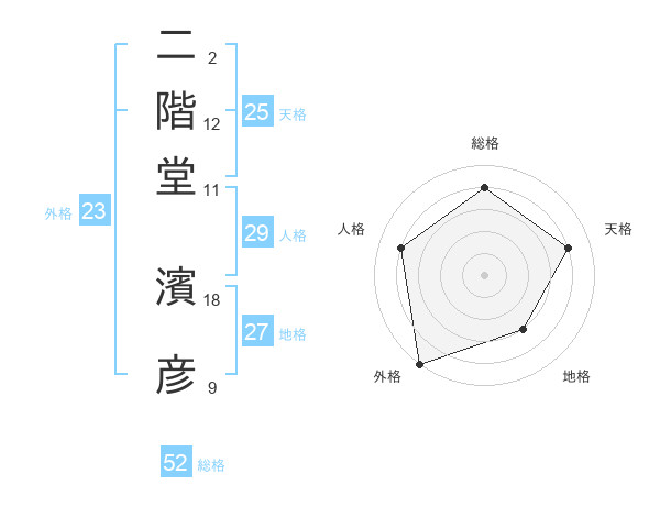 二階堂 濱彦さんの総格は52画の4点!