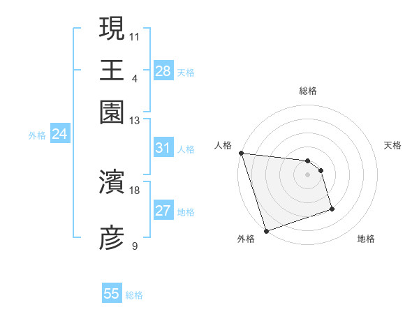 現王園 濱彦さんを姓名の画数から五運を鑑定