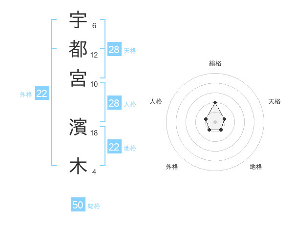 宇都宮 濱木さんを姓名の画数から五運を鑑定