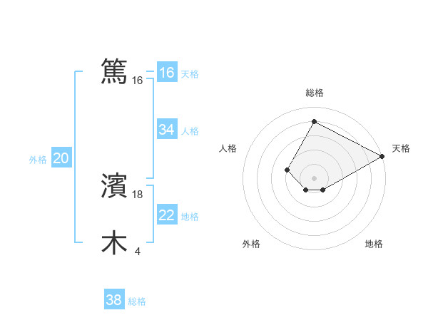 篤 濱木さんの総格は38画の4点!