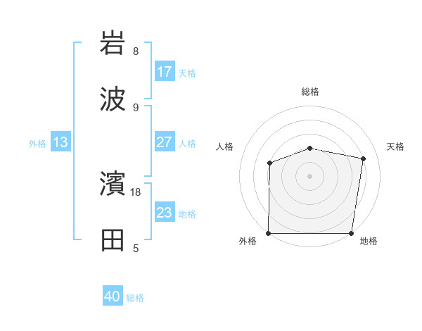 岩波 濱田さんの地格は23画の5点!