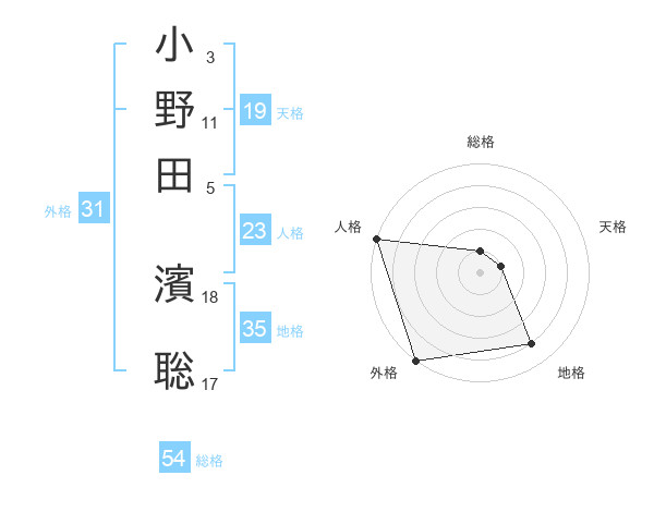 小野田 濱聡さんを姓名の画数から五運を鑑定