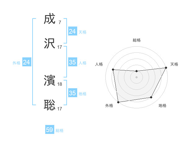 成沢 濱聡さんの天格は24画の5点!