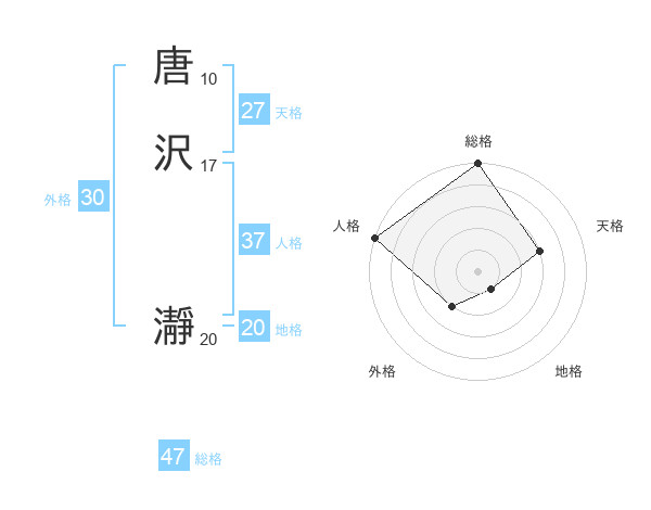 唐沢 瀞さんの総格は47画の5点!