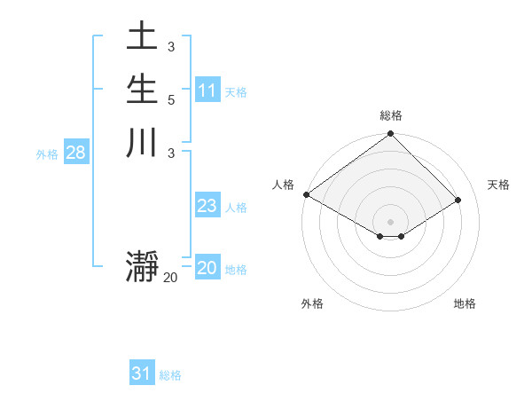 土生川 瀞さんを姓名の画数から五運を鑑定