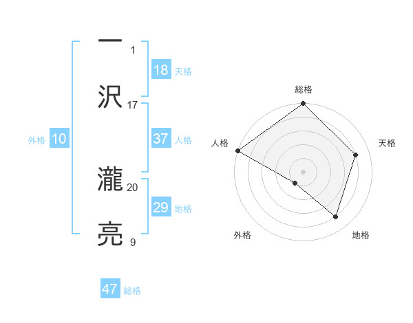 一沢 瀧亮さんの総格は47画の5点!