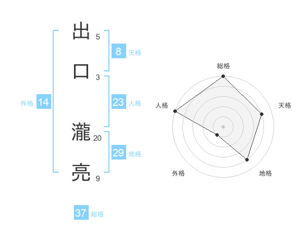 出口 瀧亮さんの総格は37画の5点!
