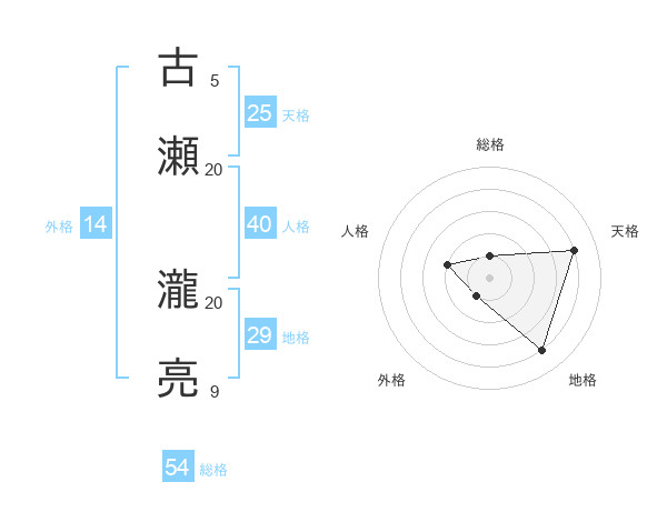 古瀬 瀧亮さんの総格は54画の1点!