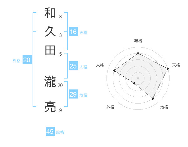 和久田 瀧亮さんを姓名の画数から五運を鑑定
