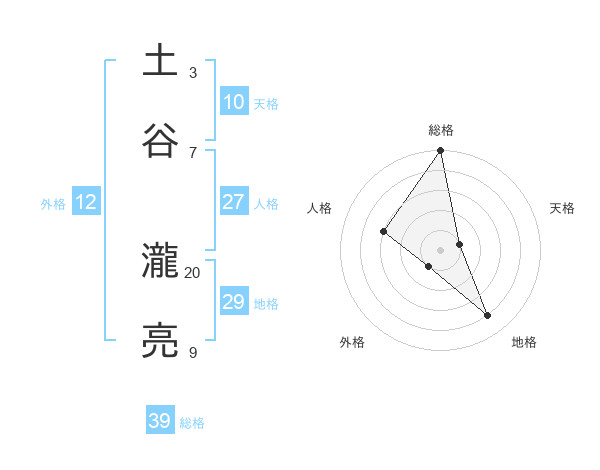 土谷 瀧亮さんの総格は39画の5点!