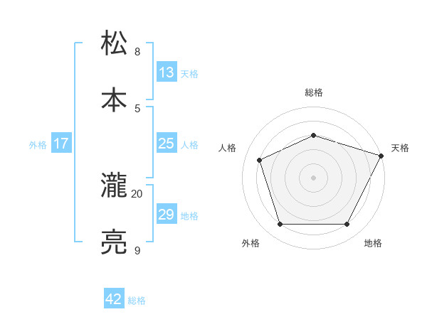 松本 瀧亮さんの総格は42画の3点!