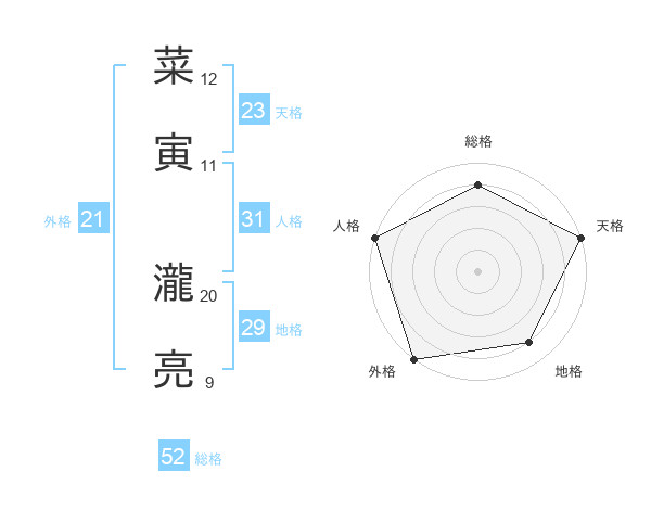 菜寅 瀧亮さんの総格は52画の4点!