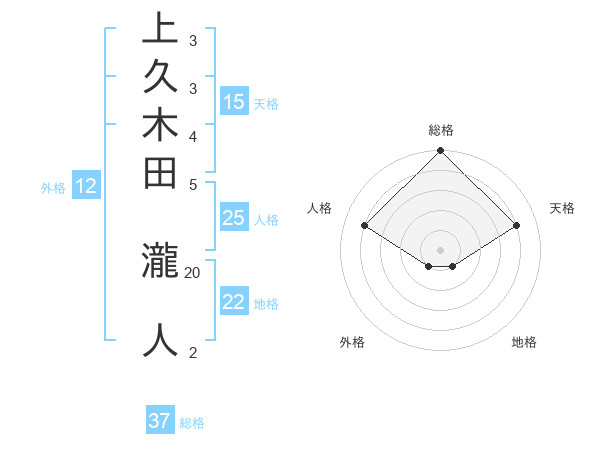 上久木田 瀧人さんを姓名の画数から五運を鑑定