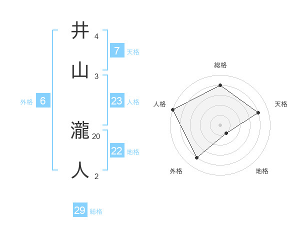 井山 瀧人さんの総格は29画の4点!