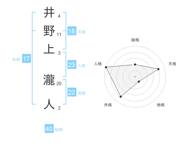 井野上 瀧人さんを姓名の画数から五運を鑑定