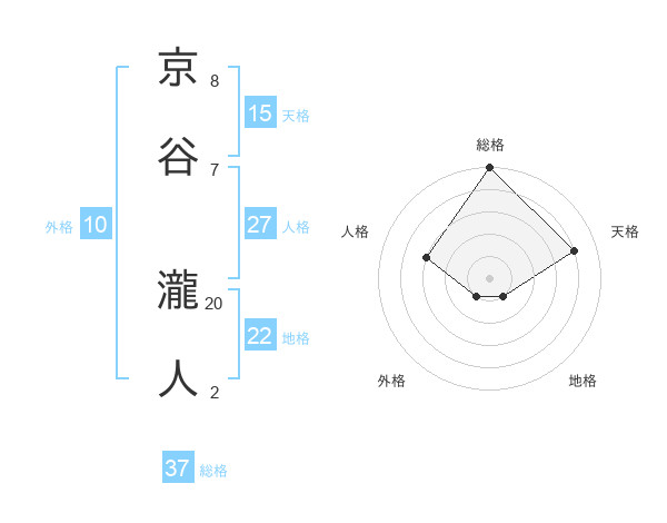 京谷 瀧人さんの総格は37画の5点!