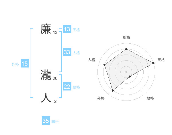 廉 瀧人さんを姓名の画数から五運を鑑定