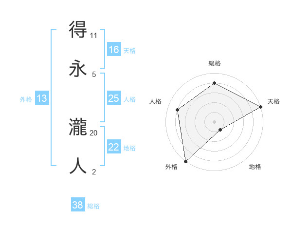 得永 瀧人さんの総格は38画の4点!