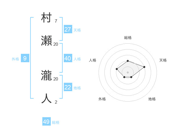 村瀬 瀧人さんを姓名の画数から五運を鑑定