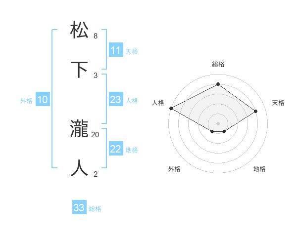 松下 瀧人さんを姓名の画数から五運を鑑定