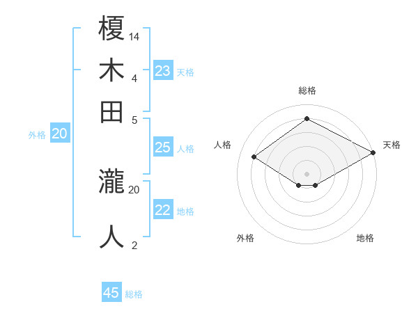 榎木田 瀧人さんの総格は45画の4点!