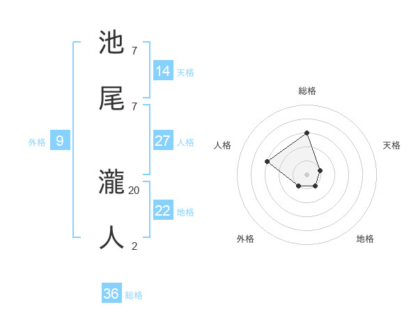 池尾 瀧人さんを姓名の画数から五運を鑑定