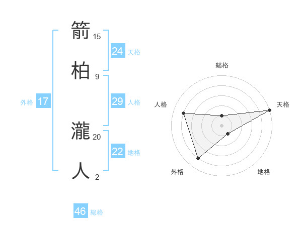 箭柏 瀧人さんの天格は24画の5点!