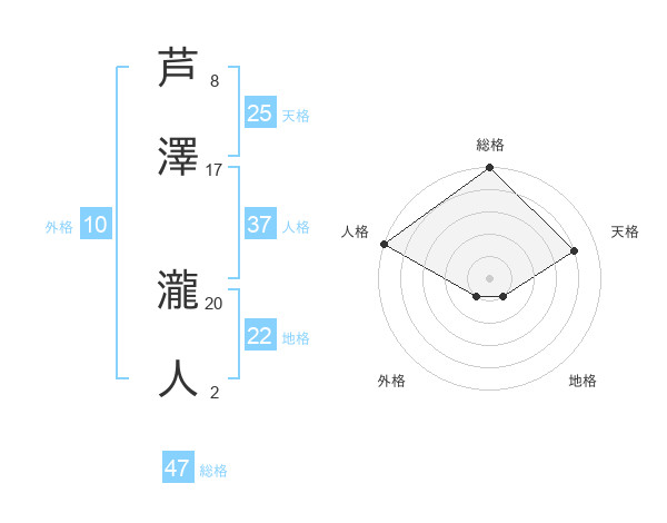 芦澤 瀧人さんを姓名の画数から五運を鑑定