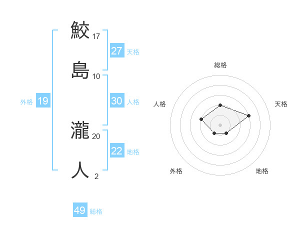鮫島 瀧人さんを姓名の画数から五運を鑑定